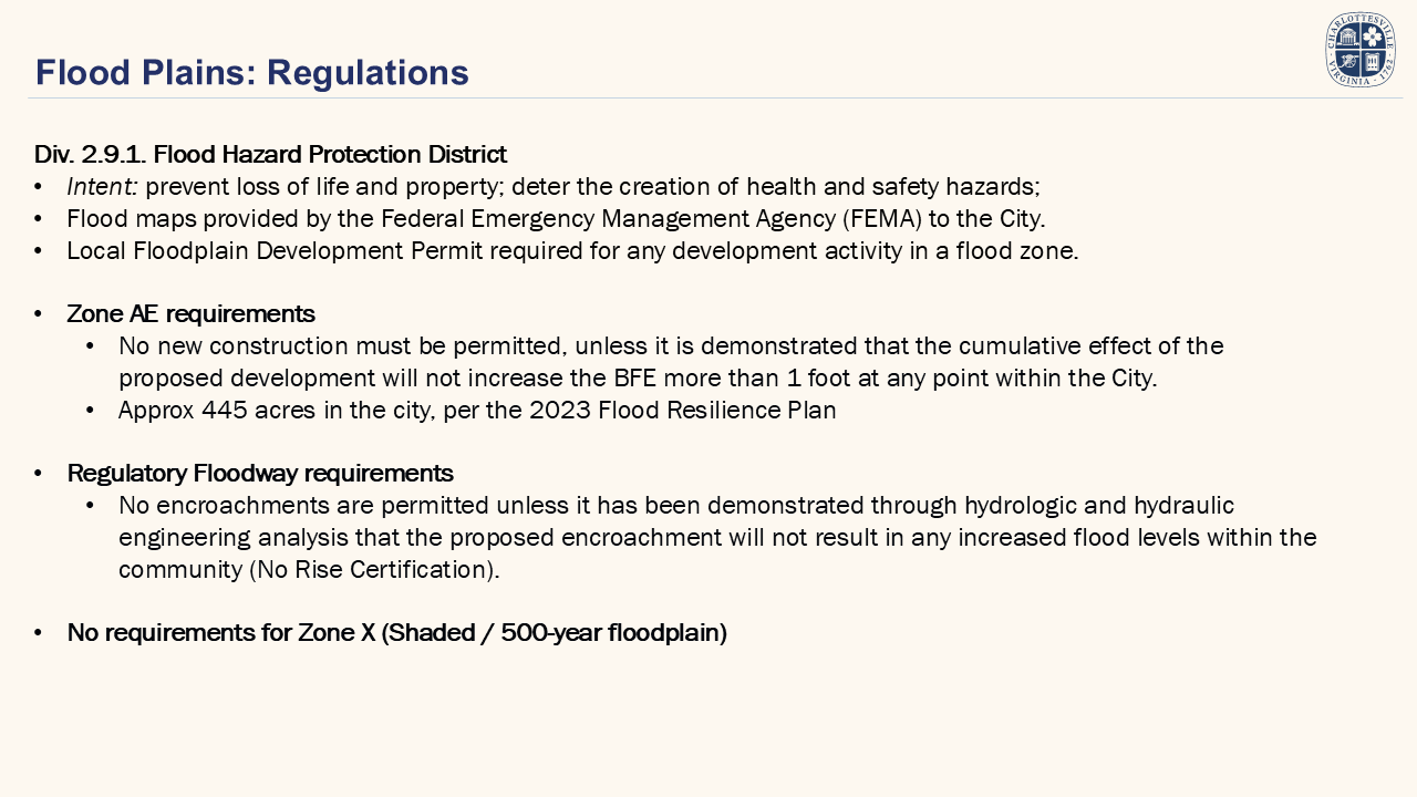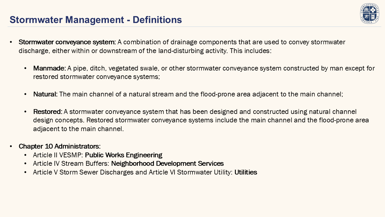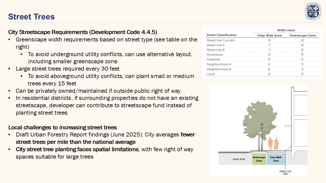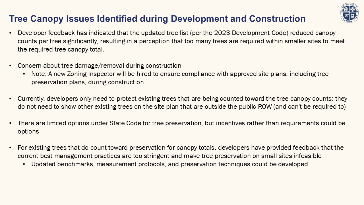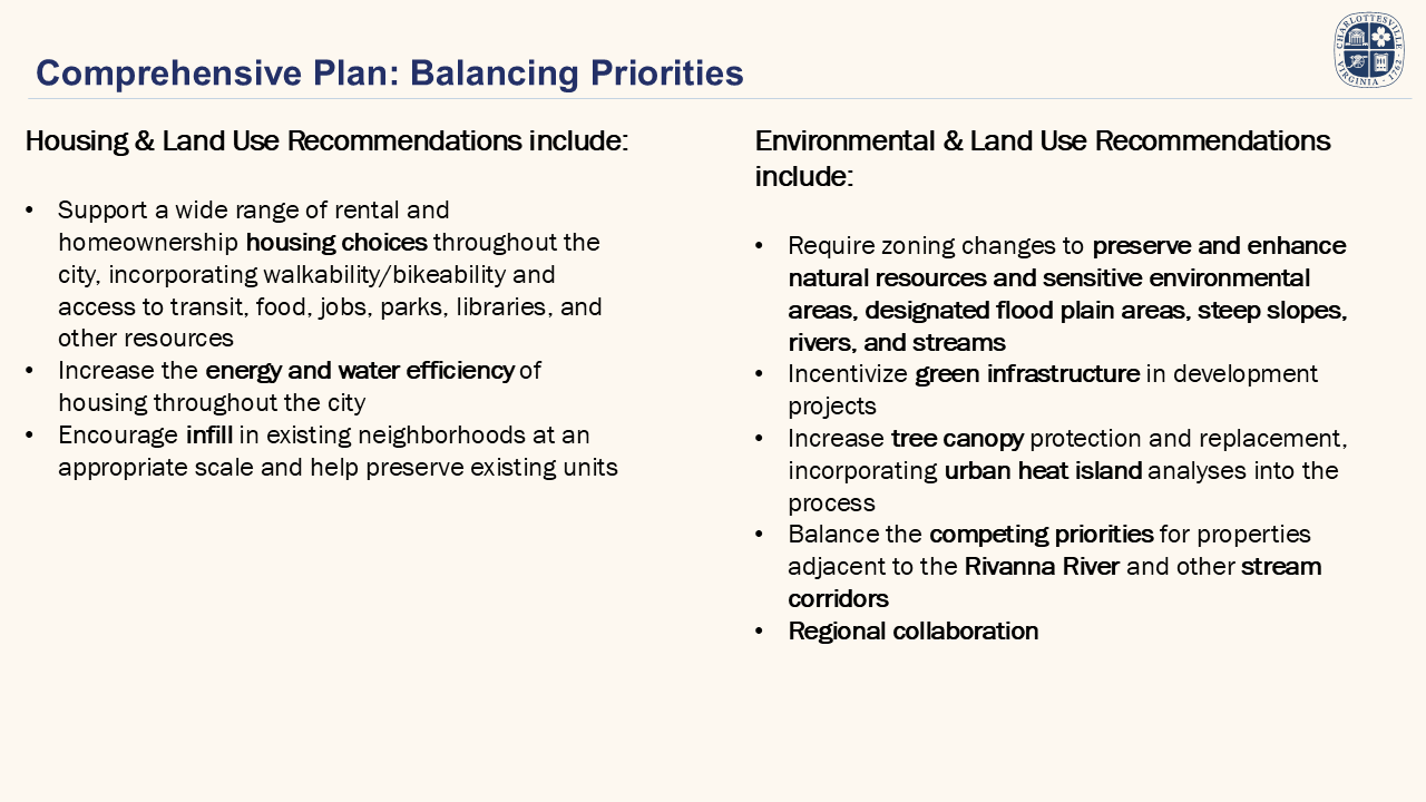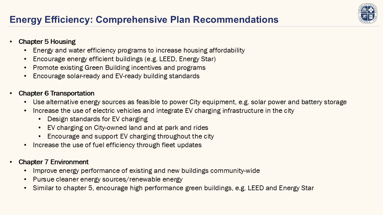 - Updates to stormwater management regulations that improve the feasibility of infill development while also increasing the use of onsite measures for water quality (e.g. rain barrels, green roofs)