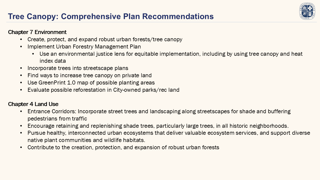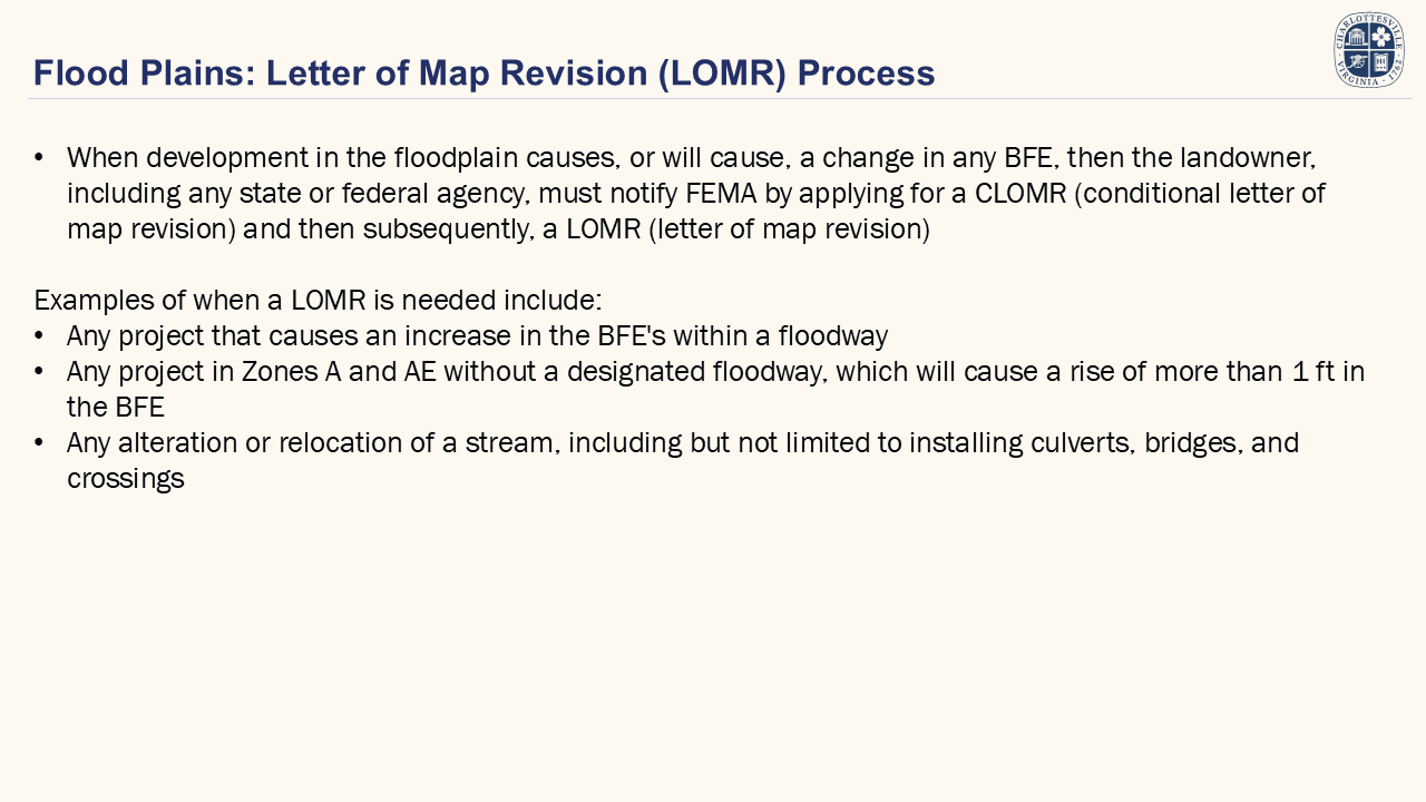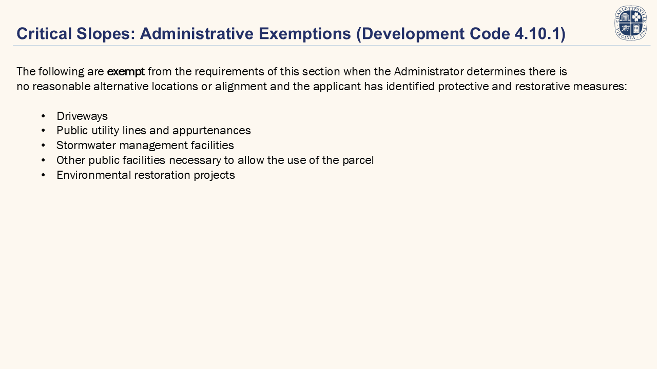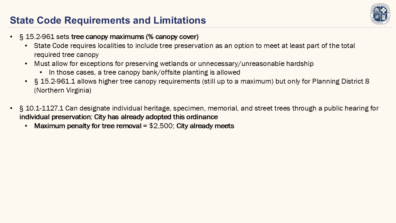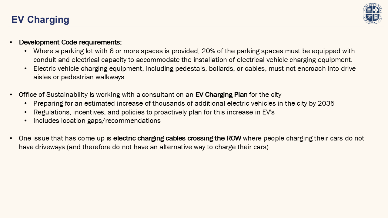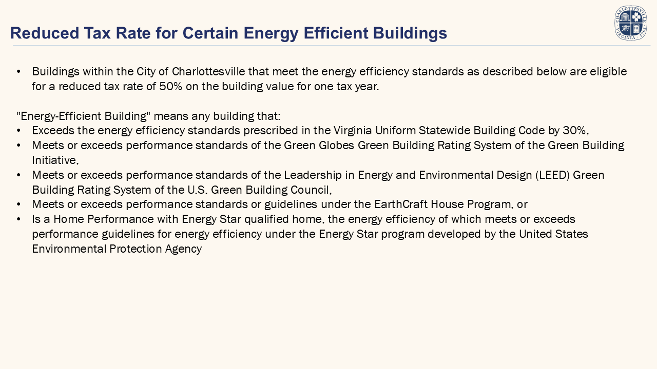 - Updates to stormwater management regulations that improve the feasibility of infill development while also increasing the use of onsite measures for water quality (e.g. rain barrels, green roofs)