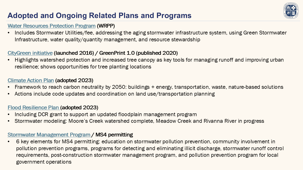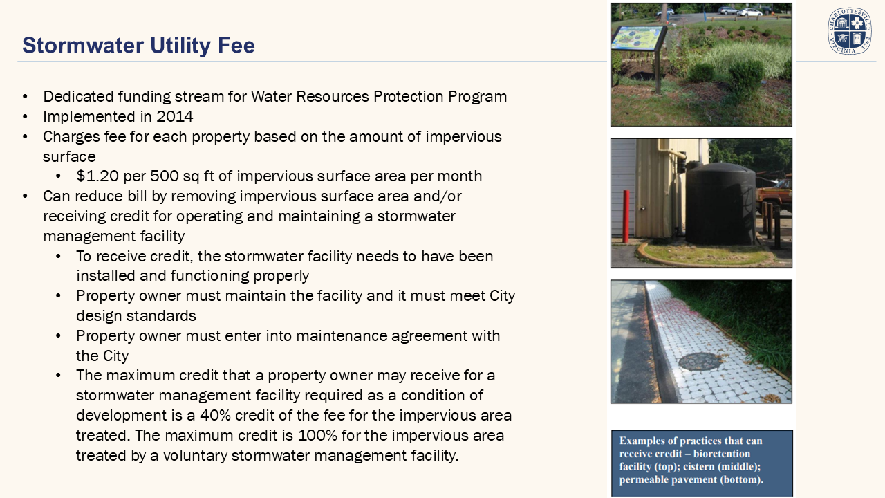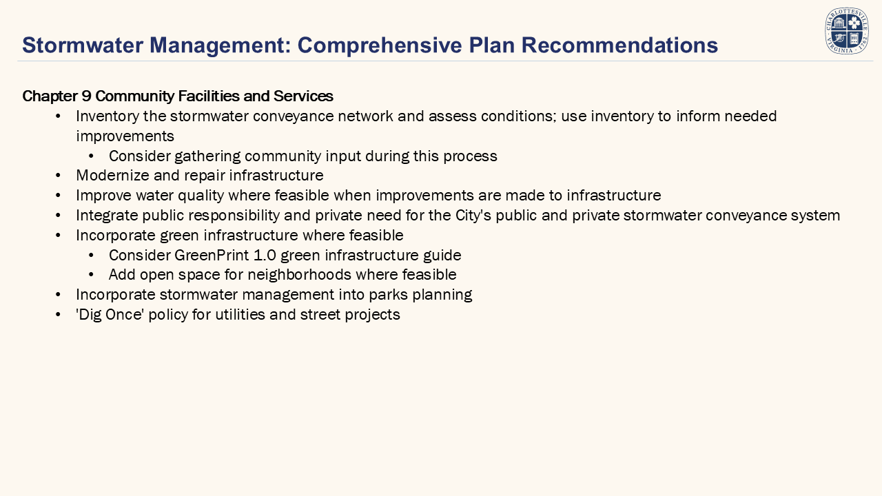 - Data to support future infrastructure needs and a long-range Stormwater Capital Improvement Plan